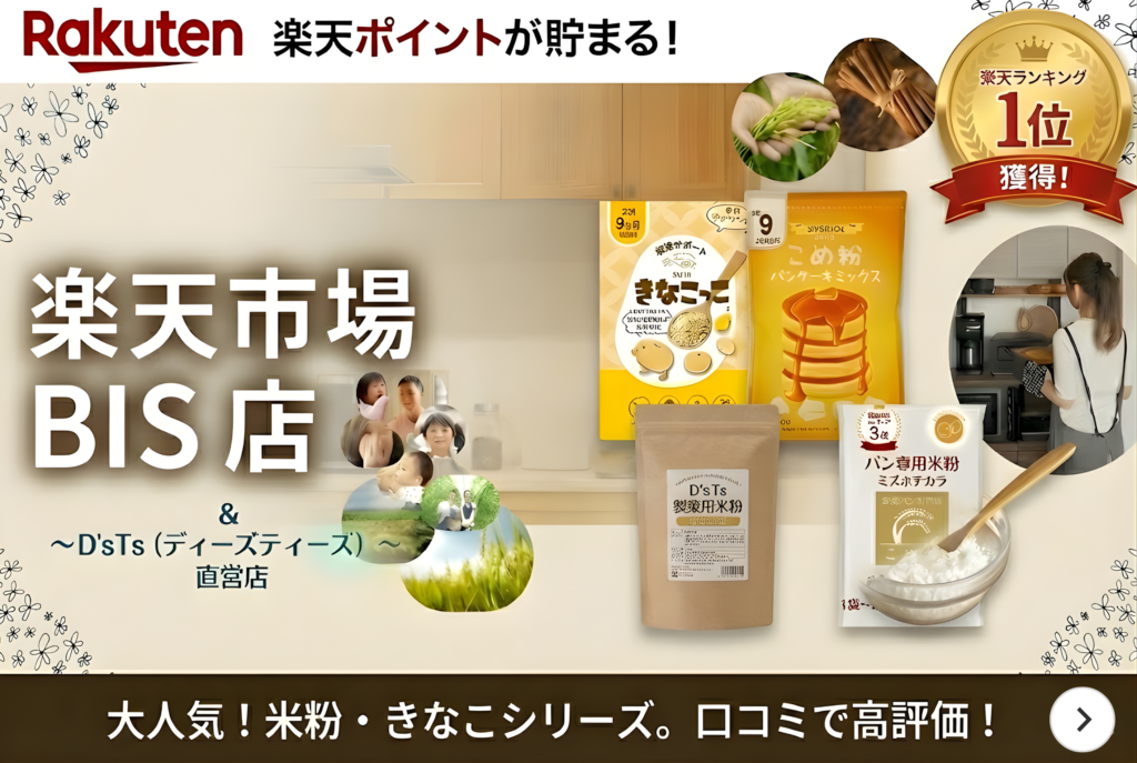 雑貨店、サロン、飲食店、そして小売企業の皆様へ。 楽天ランキングで第1位を獲得した実績を持つ「D’sTs」米粉シリーズをはじめ、トレンドと安心を兼ね備えたBISのこだわり商品を、貴社のラインナップに加えませんか?