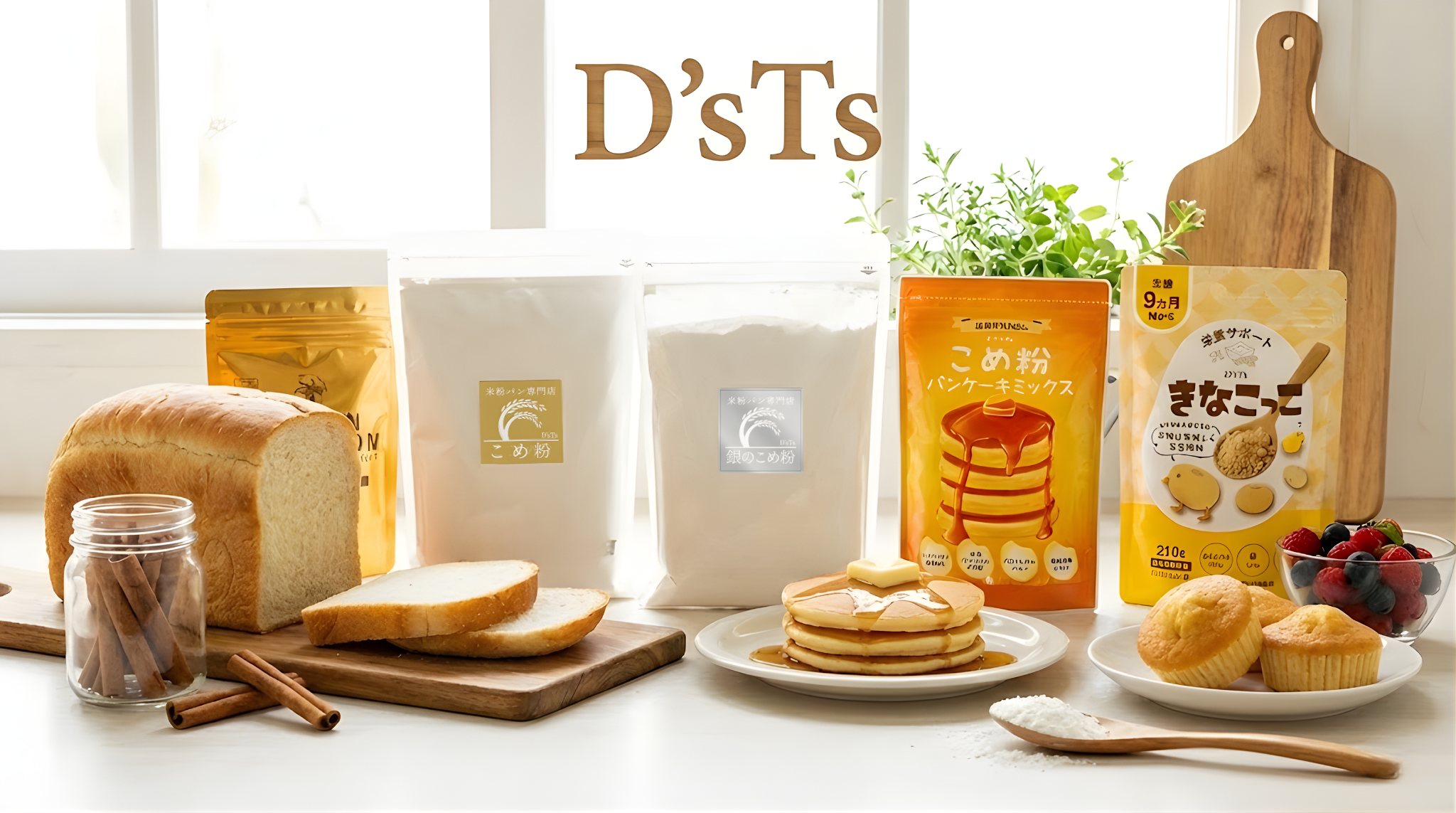 厳選した国産米粉や調味料を展開する食品ブランド。特に米粉シリーズは「マタニティフード認定」を取得しており、妊産婦さんやお子様でも安心してお召し上がりいただけます。グルテンフリー等の健康ニーズに応えつつ、何より「美味しい」ことにこだわりました。D’sTsの米粉は、パンやお菓子作りだけでなく、料理のとろみ付けや揚げ物など、日常のあらゆるシーンで活躍します。